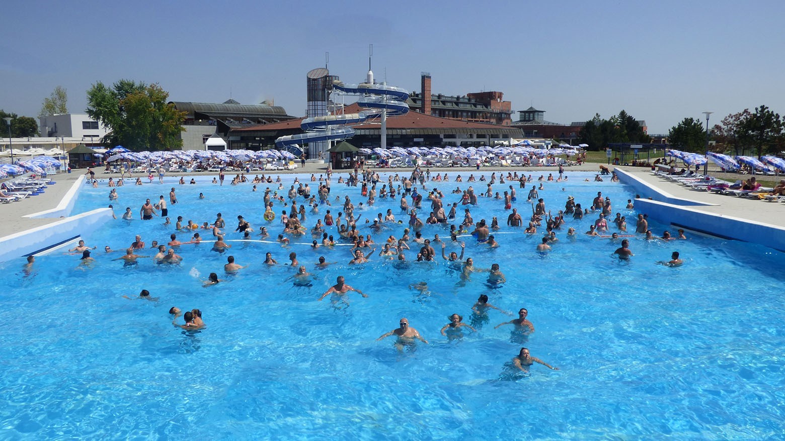 bazeni, površine 1400m2, uključuju: poluolimpijski bazen , rekreacijski, masažni –