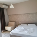 Finikas studia se nalaze u mirnom delu Leptokarije, ispod pruge, preko puta vile “Onar”. Od glavne ulice Vas deli svega 100 metara, a od plaže 160 metara, odnosno 2 minute laganog hoda. Finikas se nalazi u ulici sa veoma malo saobraćaja, u blizini parka i supermarketa pa je odličan izbor za porodično letovanje. Svaki studio poseduje odvojenu i kompletno opremljenu čajnu kuhinju, TWC, TV, klima uređaj i balkon ili terasu. Korišćenje klima uređaja nije uračunato u cenu aranžmana i plaća se na licu mesta 5 eura dnevno (nije obavezno). Gostima je na raspolaganju besplatan wireless internet. Posteljina se menja svakih 5 dana.