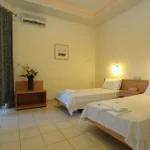 Smeštaj: dvokrevetne i trokrevetne sobe,kupatilo, TV, Wi-Fi, frižiderom i klima uređajem.Sobe gledaju na glavni put ili hotelski bazen. Promena posteljine I peškira na 5 dana.