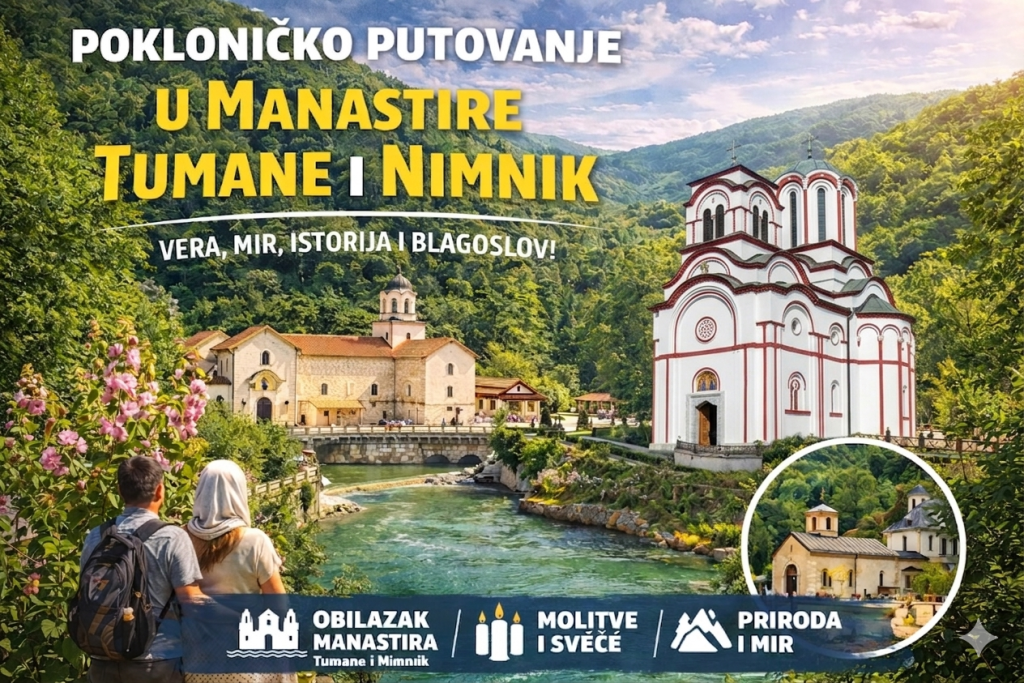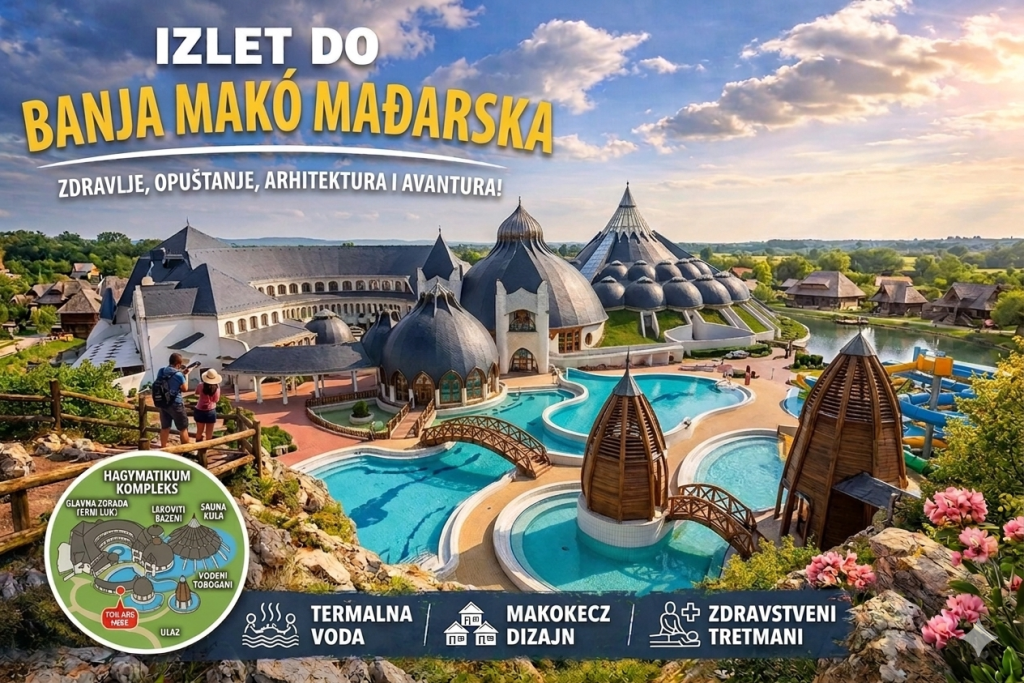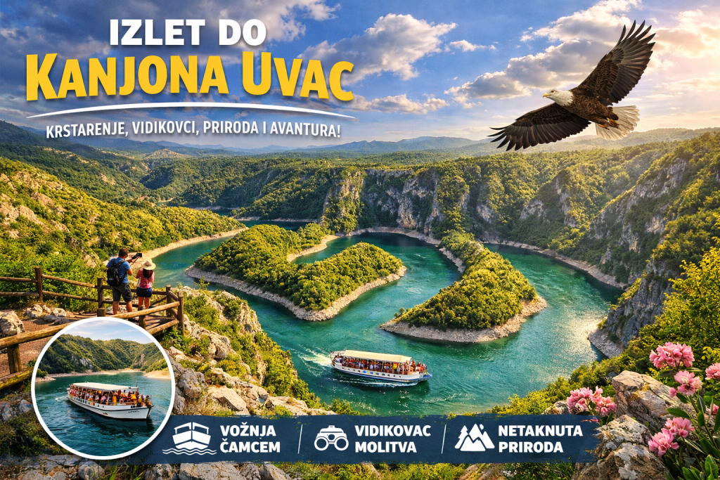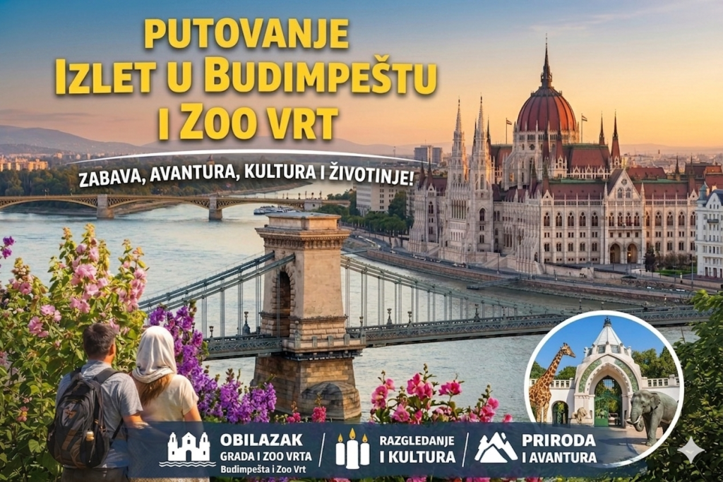 PERUĆAC - VIŠEGRAD - 18.04.2026. MANASTIR TUMANE I NIMNIK - 18.04.2026. PLITVIČKA JEZERA - 25.04.2026. ZAMAK TRAKOŠĆAN - 19.04.2026. RESAVSKA PEĆINA - 19.04.2026. JANJSKE OTOKE - BANJALUKA - 12.06.2026. BUDIMPEŠTA ZOO - 02.05.2026. BANJA MAKO - 03.05.2026. SARAJEVO - PIRAMIDE - 30.05.-31.05.2026. SAFARI PARK MAĐARSKA - 16.05.2026. PLITVIČKA JEZERA - 17.05.2026. KRSTARENJE DUNAVOM - 23.05.2026. MANASTIR VITOVNICA - 24.05.2026. OVČARSKO KABLARSKA KLISURA 06.06.2026. ETNO SELO STANIŠIĆ - 07.06.2026. KONCERT U BEČU - 19.06.2026. KANJON UVAC, SJENICA - 04.07.2026. PEČUJ, ŽOLNAI, ZOO VRT - 04.07.2026.