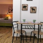 - Studio za 2 osobe – br.2 – renoviran studio, opremljen potpuno novim nameštajem i sastoji se iz dve prostorije i to ulaznog dela sa mini kuhinjom (mini hotelski frižider, indukciona ploča i mikrotalasna pećnica), odvojene spavaće sobe sa dva ležaja, LED SMART TV-om, klima uređajem i standardnog kupatila sa tuš kabinom i fenom za kosu. Terasa sa pogledom na dvorište i Ozren.
