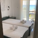 1/3 apartman sa pogledom na more – u jednoj prostoriji čajna kuhinja i jedan običan ležaj, u drugoj dva obična ležaja (spojena) – MAKSIMALNO ZA TRI OSOBE BEZ OBZIRA NA UZRAST