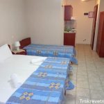 Sadržaj soba: Svaki studio poseduje opremljenu čajnu kuhinju (frižider, mini električni šporet, posuđe) namenjenu za pripremu lakih obroka, kupatilo, TV sa srpskim kanalima, WiFi (slabog protoka), klima uređaj čije je korišćenje uračunato u cenu najma, kao i prostrane terase sa garniturama za sedenje, zaštićene tendama. U studijima ima peškira. Promena posteljine, peškira i čišćenje vrši se na pet dana.