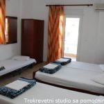 Sadržaj vile: U ponudi imamo četrnaest trokrevetnih studija i trokrevetne studije sa pomoćnim ležajem. Studiji su smešteni u visokom prizemlju, na prvom i drugom spratu vile. U sklopu dvorišta se nalazi tuš i travnata površina gde se mogu igrati najmlađi gosti.