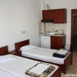 Sadržaj soba: Sve smeštajne jedinice imaju opremljenu čajnu kuhinju (frižider, mini električni šporet, posuđe) namenjenu za pripremu lakih obroka, kupatilo, klima uređaj čije je korišćenje uračunato u cenu najma, TV, WiFi (slabog protoka) i prostrane terase sa garniturama za sedenje. Vila ne poseduje peškire. Promena posteljine i čišćenje je na dan smene.