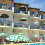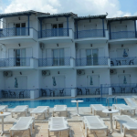 Opis: Objekat poseduje bazen I ležaljke oko bazena. U našoj ponudi su trokrevetni I četvorokrevetni apartmani, smešteni na prvom spratu I svi imaju pogled na bazen, a svaki od njih poseduje kompletno opremljeni kuhinjski deo, kupatilo/wc, terasu, WiFi, klima uređaj (uz doplatu na licu mesta od 5e dnevno).