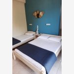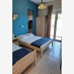 Vila Vasiliki nalazi se u blizini obale u Leptokariji, udaljena od same plaže 15-ak metara. Vila poseduje dvokrevetne, trokrevetne i četvorokrevetne studije od kojih većina ima bočni pogled na more. Sve smeštajne jedinice poseduju osnovno opremljenu kuhinju: frižider, rešo, posuđe i escajg srazmerno broju ležajeva, kupatilo, terasu, TV i klima uređaj, čija se upotreba doplaćuje 5 eura dnevno ukoliko se koristi. Klijenti sami održavaju higijenu apartmana, dok je promena posteljine jedanput u toku boravka. U vili postoji i mogućnost korišćenja WiFi interneta.